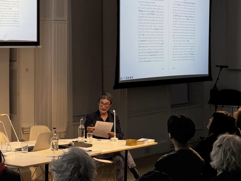 Two words brought together to describe a simultaneous act of reading and walking, of reading as walking, of walking as reading, of sounding a text about walking, step by step, one word calling the other, following one’s senses, like Thoreau.