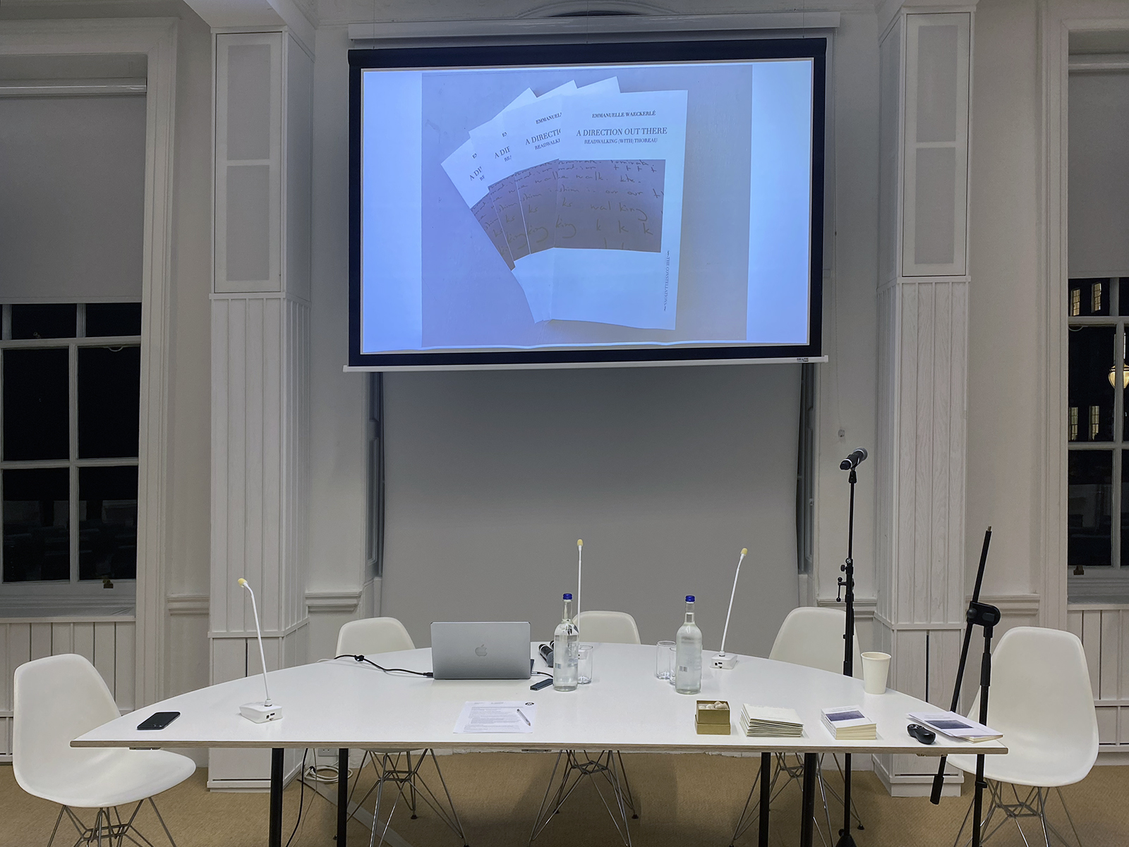 This was the first public reading involving an audience, I usually readwalk with musicians, or other writers/readers. With an ensemble of 12 volonteer readwalkers (voice, little stones) we read from and through the first 8 pages of the prepared text projected on 3 screens so that the rest of the audience could also take part.