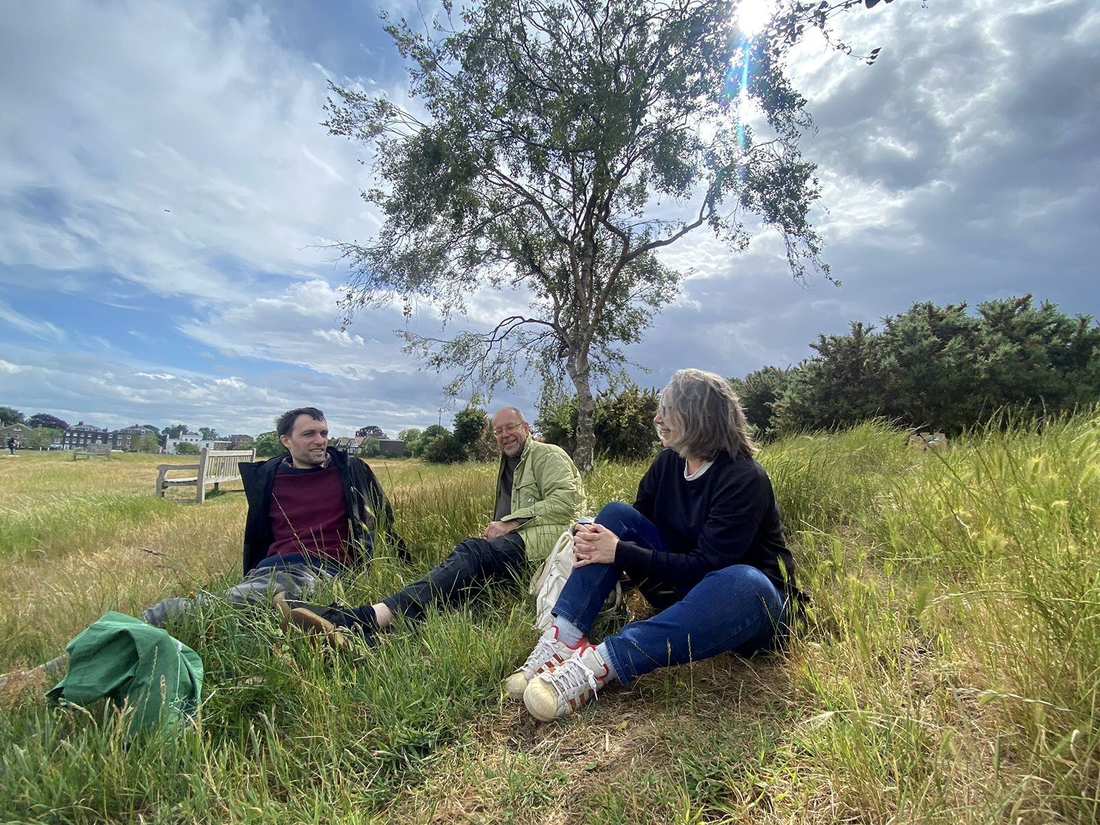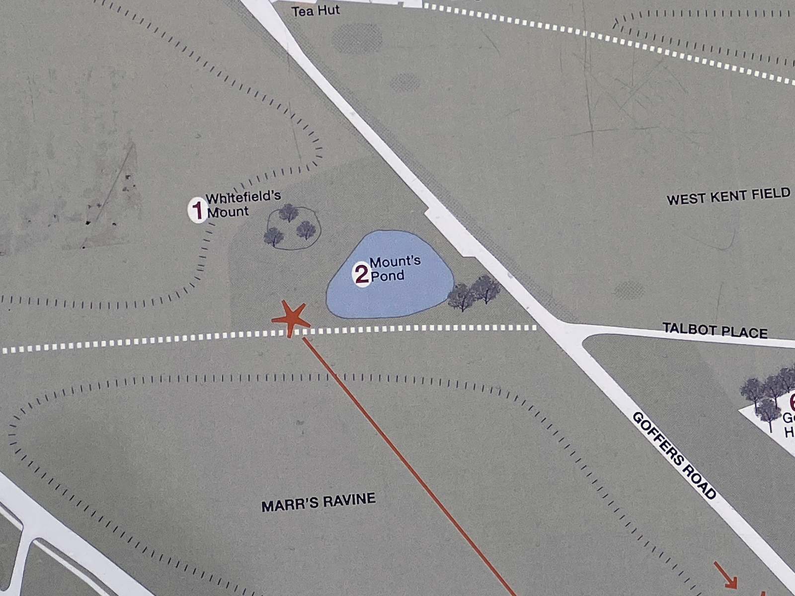 We undertook local fieldwork around Mounts Pond on Blackheath Common. The pond was completely dry. on 26 May 2025. This is a site that Carol had visited daily for months in the period when she was writing her book Mimic Pond (Shearsman, 2024).